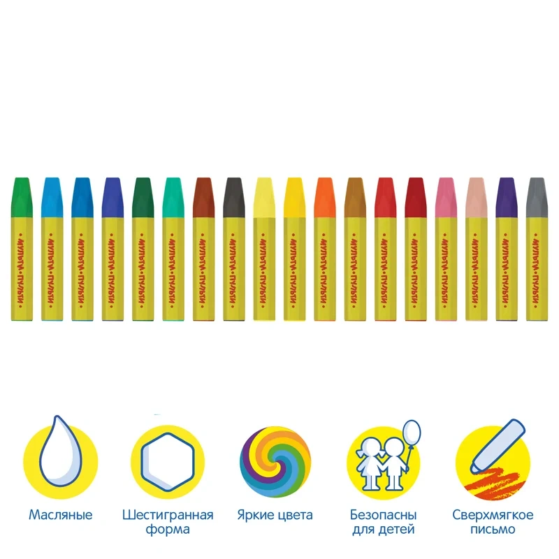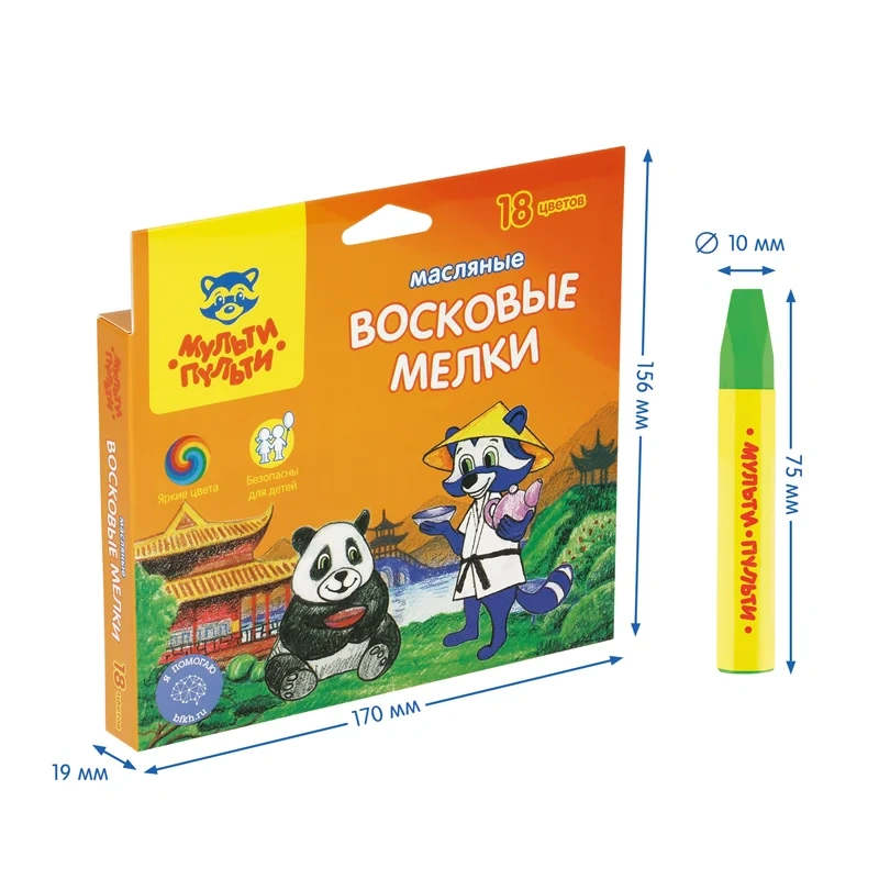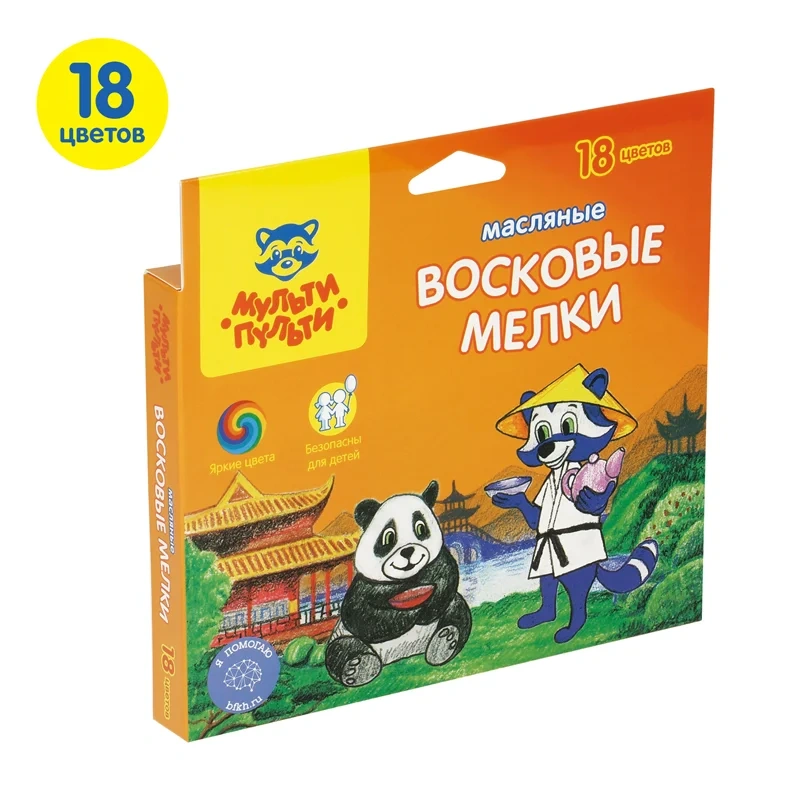 Мелки масляные Мульти-Пульти 'Енот в Китае', 18цв., шестигранные, картон, европодвес