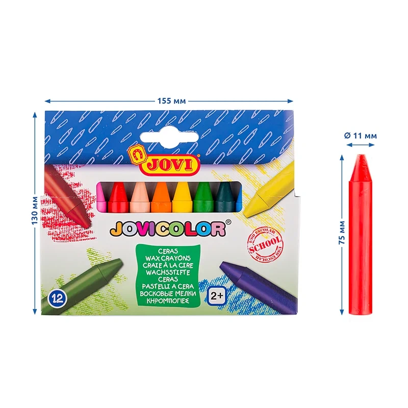 Мелки восковые JOVI, 12цв., круглые, картон, европодвес