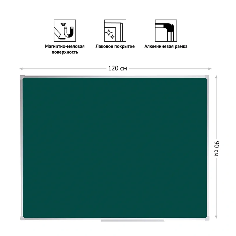 Меловая доска Officespace 120х90см, зеленая, лаковая, магнитная, алюминиевая рамка, полочка
