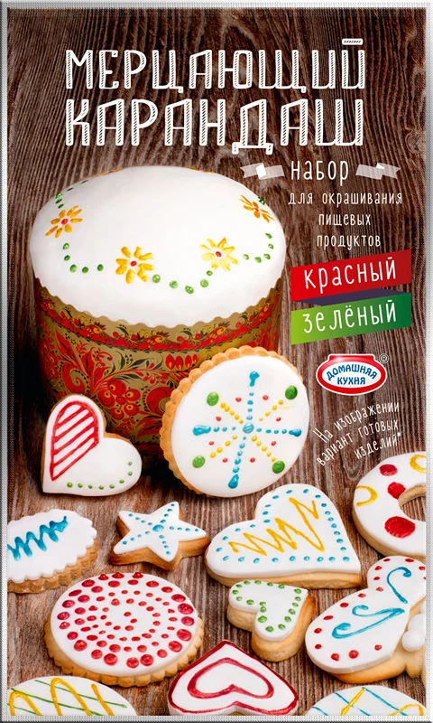 Мерцающий карандаш Домашняя кухня – пищевой краситель, который придает цвет пасхальным яйцам, муссам, желе, масляным, заварным и белковым кремам, джемам, мастике, мороженому, тесту. Изготовлен на глицериновой основе, окрашивает пищу в насыщенные цвета, расход экономный. Продукт легко отмывается с кожи и посуды. Изделие не меняет свойств в щелочной и кислой среде, не вступает в реакции с продуктами.