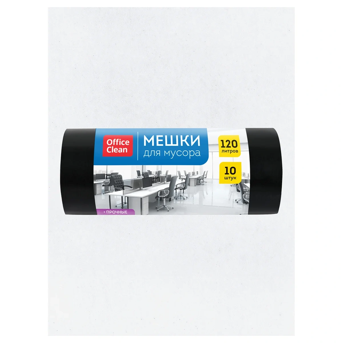 Мешки для мусора 120л OfficeClean ПВД, 70*110см, 40мкм, 10шт., прочные, черного цвета, в рулоне