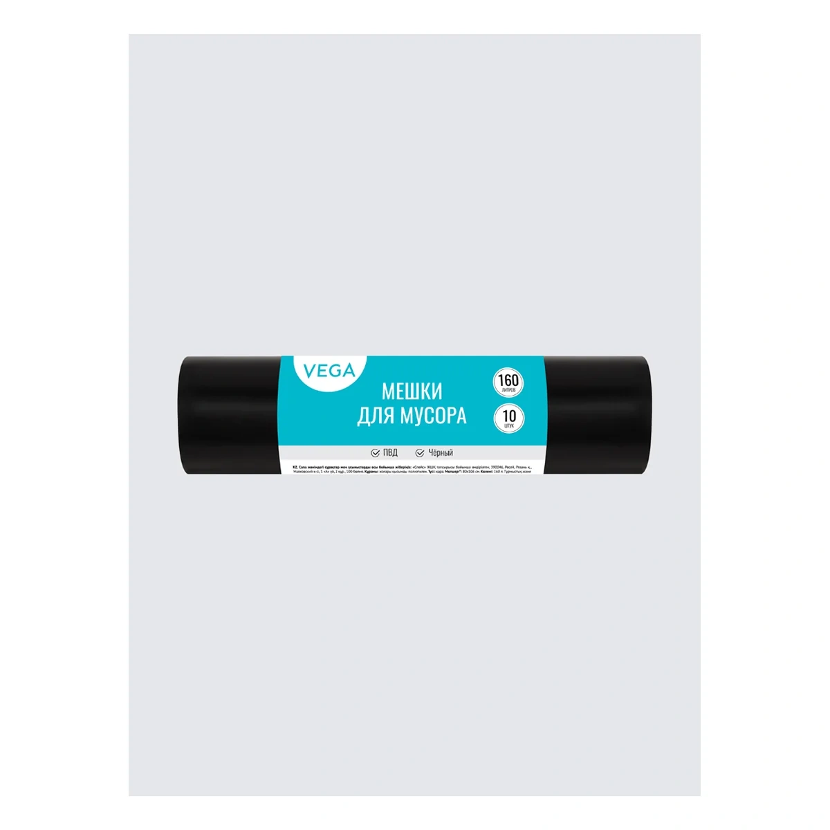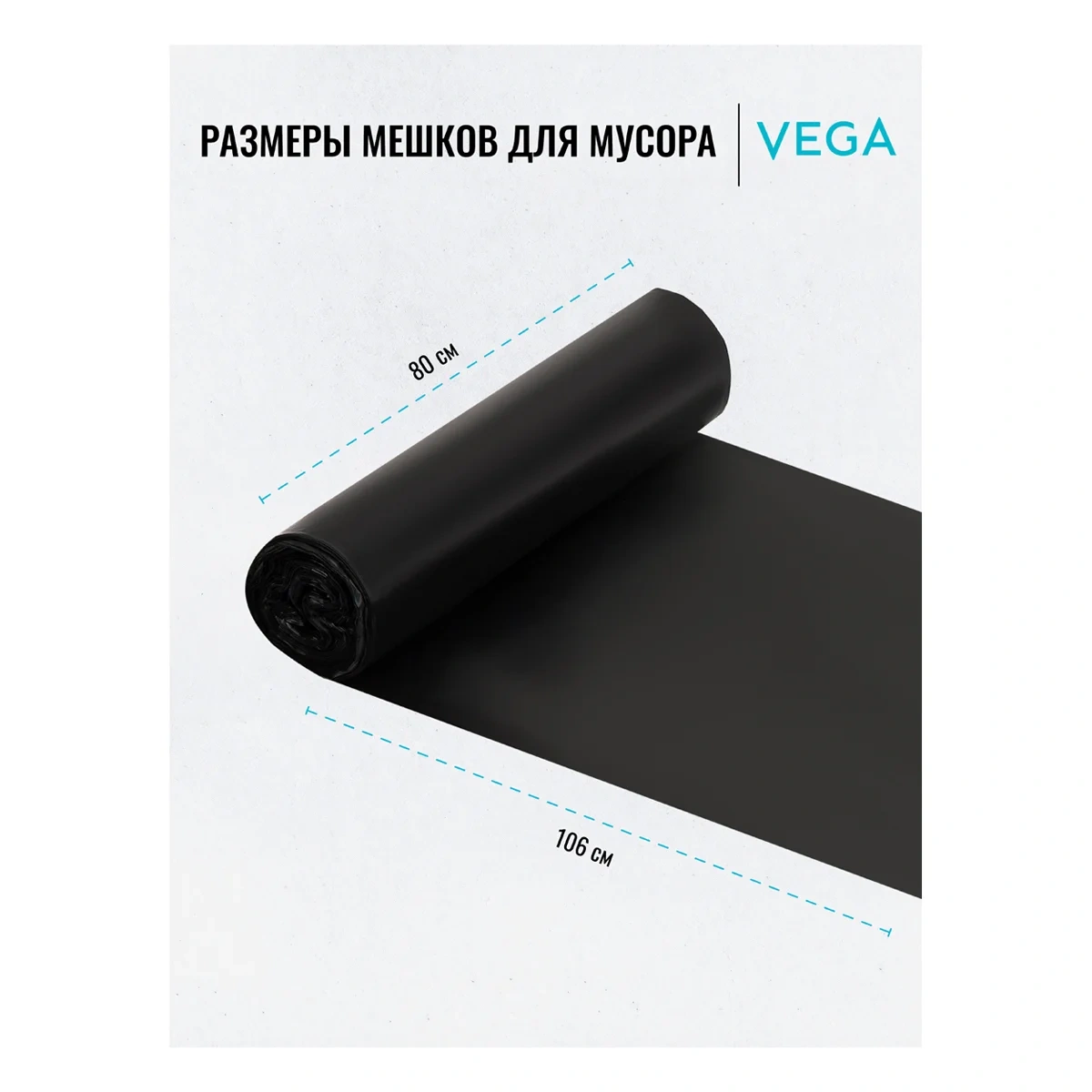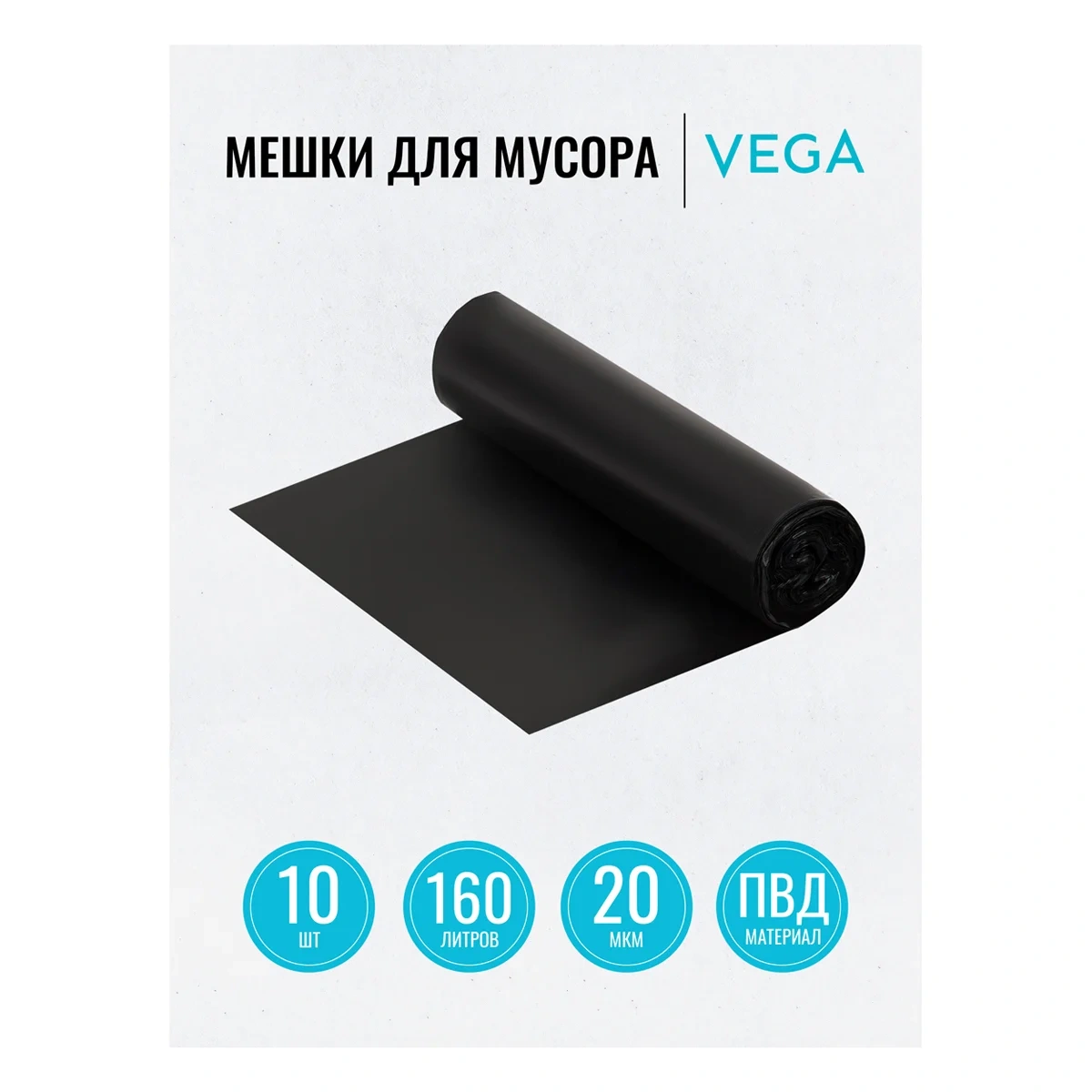 Мешки для мусора 160л Vega ПВД, 80*106см, 20мкм, 10шт., черного цвета, в рулоне