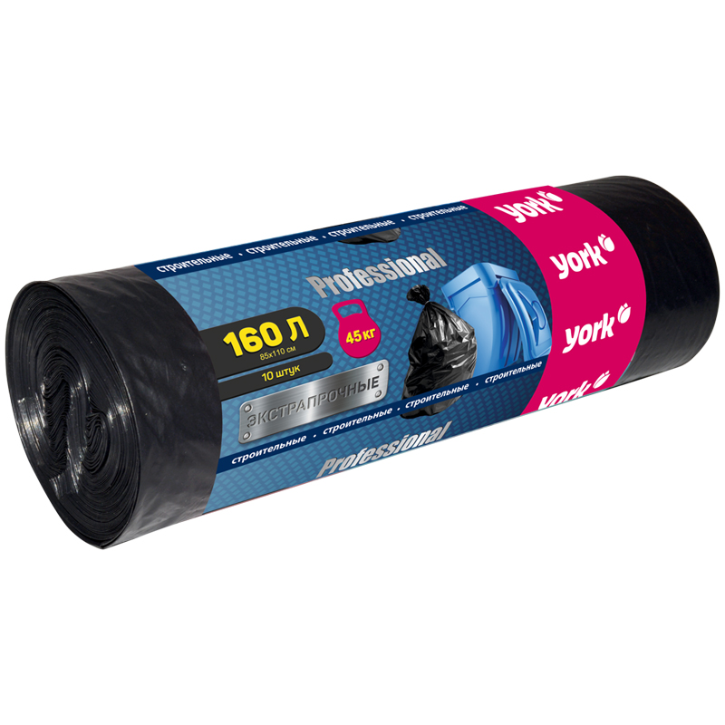 Мешки для мусора 160л York ПВД, 60мкм, 10шт., черного цвета, в рулоне
