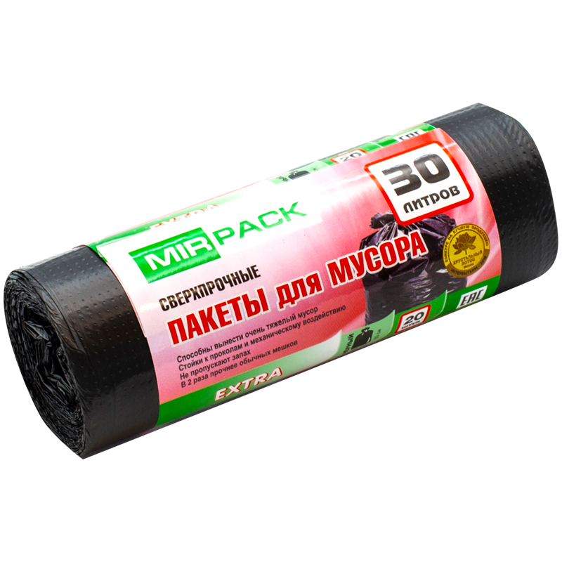 Мешки для мусора 30л Mirpack 'Extra' ПНД, 50*60см, 12мкм, 20шт., черного цвета, в рулоне