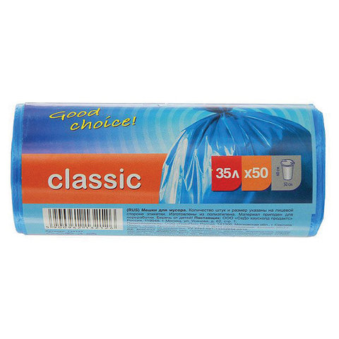 Мешки для мусора Paclan Classic 35л, синие, 7,3мкм, 50 шт