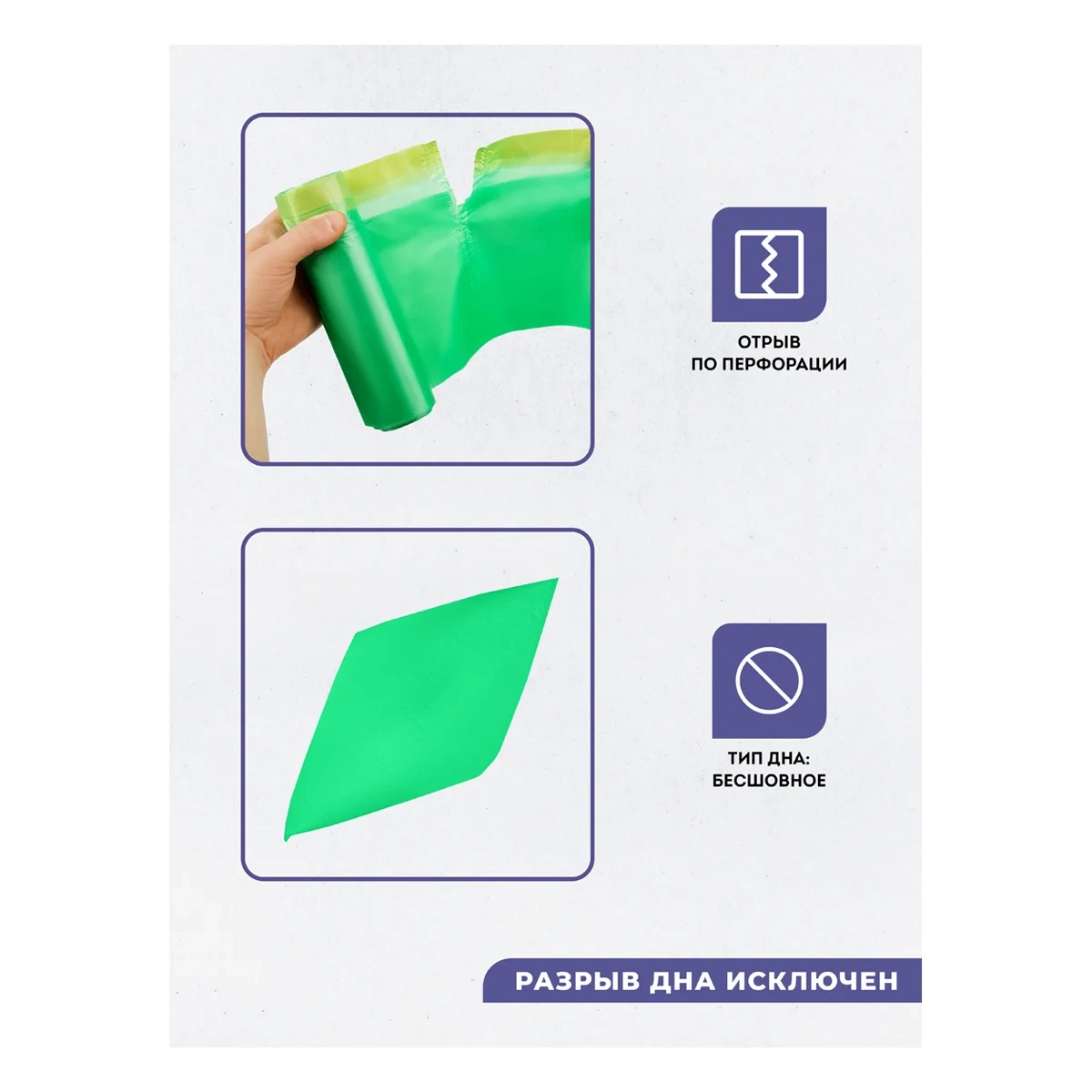 Мешки для мусора 35л OfficeClean биоразлагаемые ПНД, 50*60см, 15мкм, 20шт., прочные, зеленые, в руло