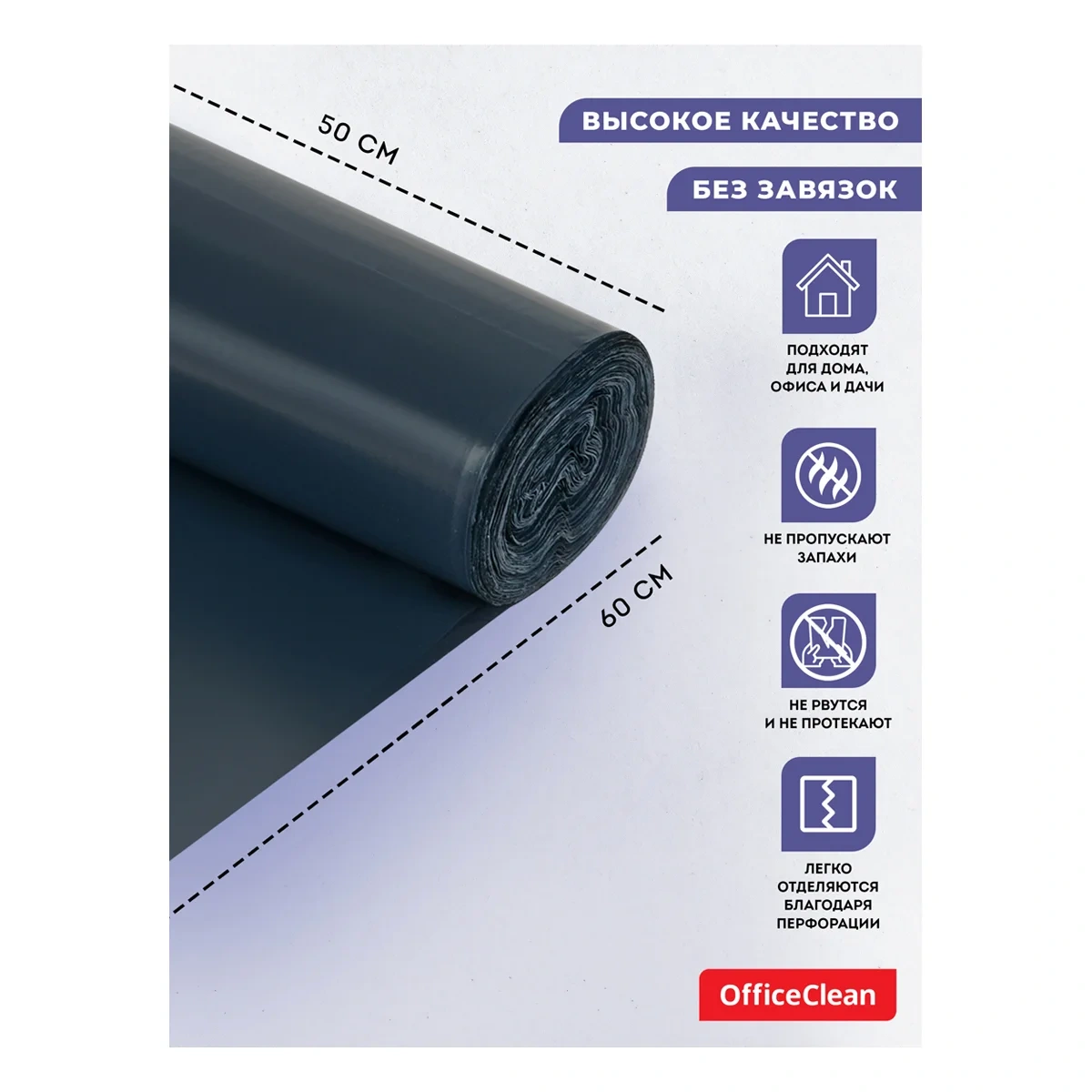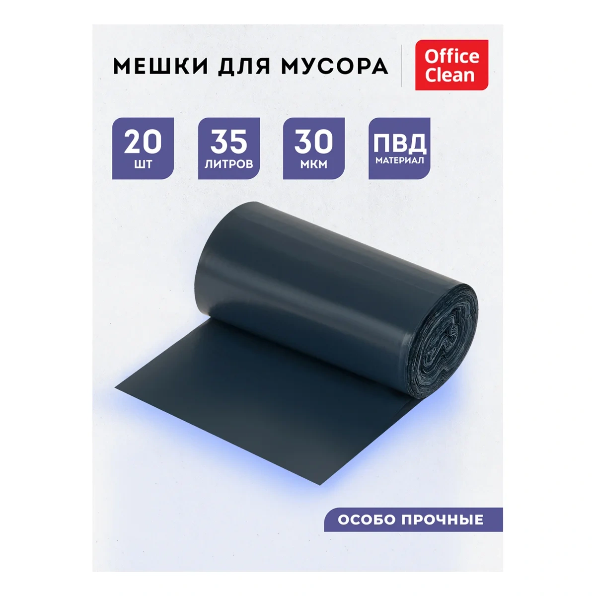 Мешки для мусора 35л OfficeClean ПВД, 50*60см, 30мкм, 20шт., двухслойные, особо прочные, синие, в ру