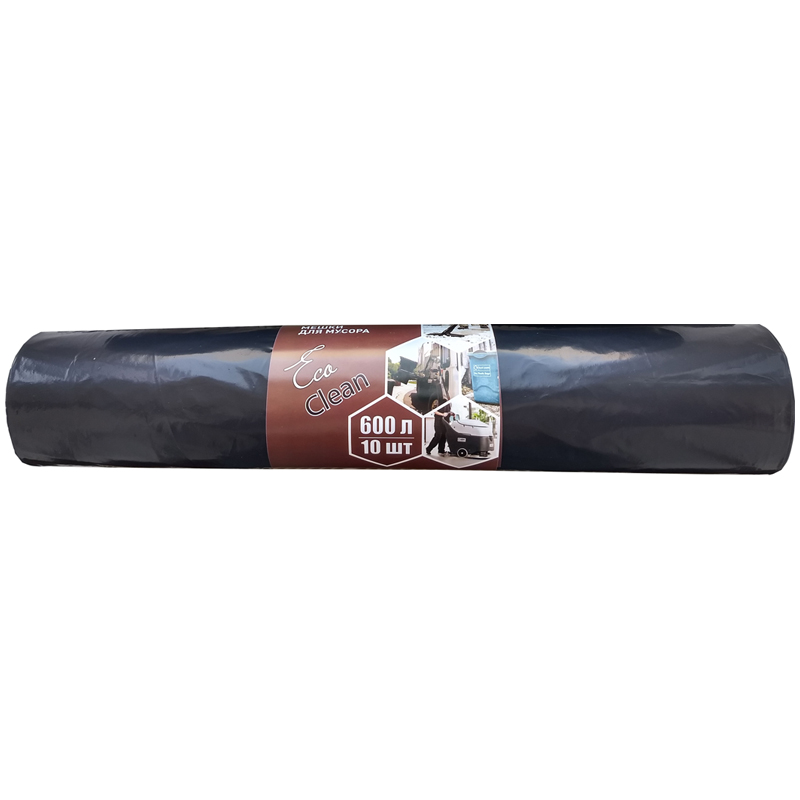 Мешки для мусора 600л КБ 'Ecoclean' ПВД, 140*180см, 50мкм, 10шт., черного цвета, в рулоне