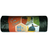 Мешки для мусора 60л КБ 'Ecoclean' ПНД, 58*65см, 6мкм, 50шт., черного цвета, в рулоне