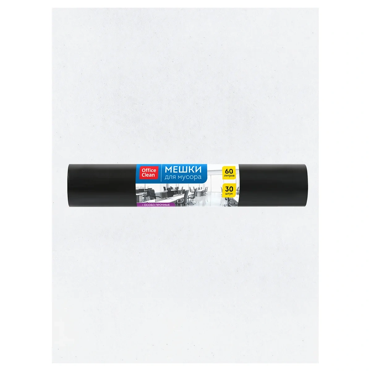 Мешки для мусора 60л OfficeClean ПСД, 60*70см, 20мкм, 30шт., особо прочные, черного цвета, в рулоне