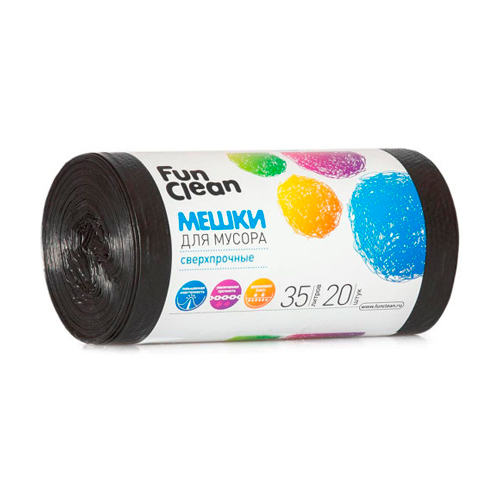 Мешки для мусора Fun Clean Сверхпрочные 35л, черного цвета, 20 шт