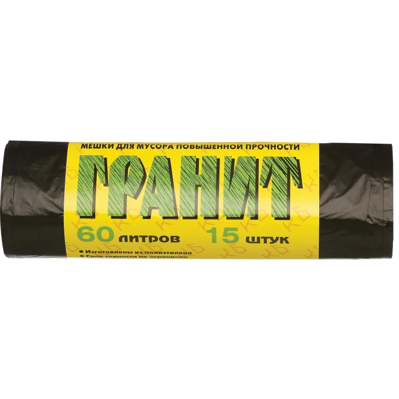 Мешки для мусора Гранит 60 л черные (ПНД, 11 мкм).