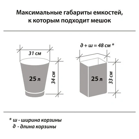 | Размер мешков | маленькие (до 60л) |