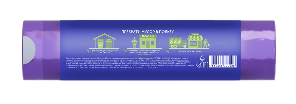 Высококачественные пакеты из полиэтилена низкого давления для мусора, хранения и транспортировки. Усиленный сварный шов обеспечивает устойчивость к разрывам. Легко затягиваются, в них удобно выкидывать мусор. Яркий фиолетовый цвет заметен в мусорном ведре.