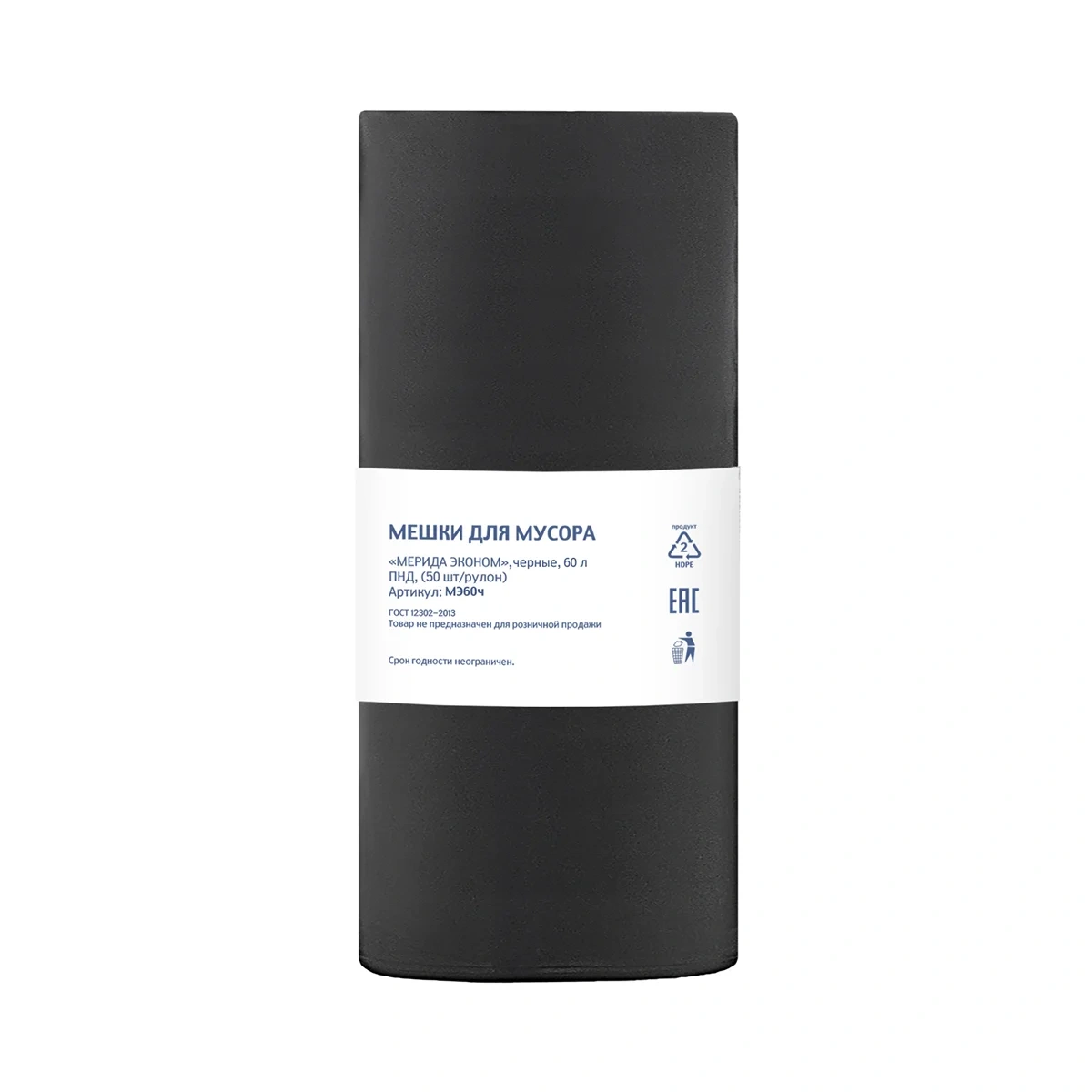 Мешки для мусора Merida Эконом 60л, черного цвета, ПНД, 50 шт