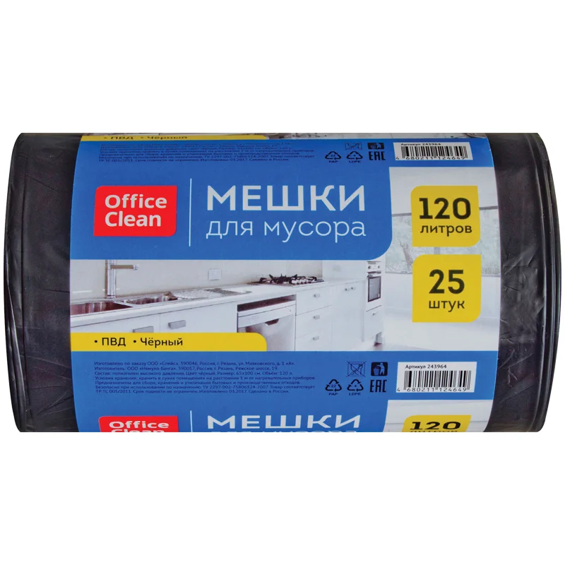 Мешки для мусора Officeclean 120л, 30мкм, 25 шт