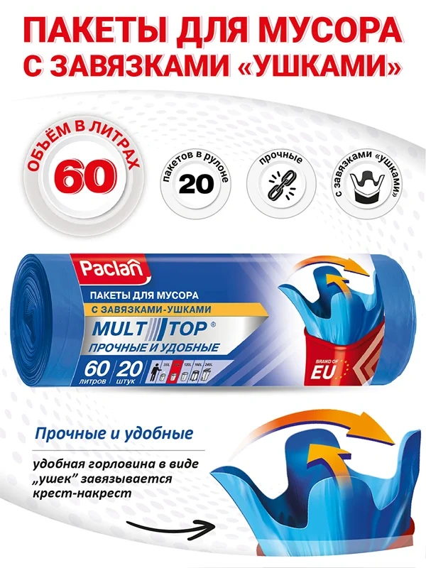 Мешки для мусора Paclan Multi-Top 60 х 77см 60л, 20шт