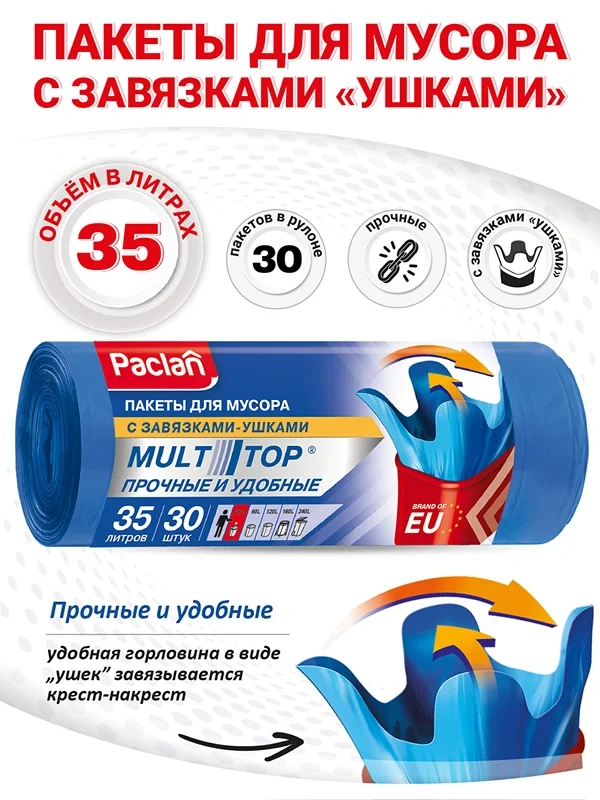 Мешки для мусора Paclan Multitop 35л, 15мкм, с завязками, 30 шт
