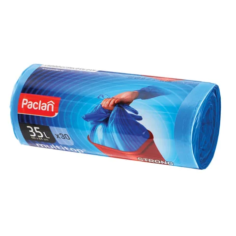 Мешки мусорные Paclan Multitop 35 л, 30 шт. представлены в виде рулона. Компактная упаковка не занимает много места при хранении. Для удобства использования каждый пакет отделен от последующего при помощи перфорации. Мешки легко отрываются друг от друга, сохраняя целостность. Завязки выполнены в виде четырех ушек из единого куска полиэтилена, из того же материала, что и пакет. После его наполнения ушки нужно завязать крест-накрест. Донный шов Звезда выдержит большой вес, т. к. он создан из восьми спаянных слоев полиэтилена. Пакет выдерживает бытовой мусор и не рвется при попытке его завязать. Такие изделия могут использоваться в быту, государственных учреждениях, офисах. Срок годности не ограничен. Рулон необходимо хранить в сухих помещениях на расстоянии не менее 1 м вдали от приборов отопления и прямых солнечных лучей.