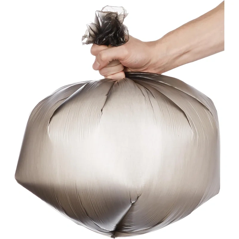 Мешки для мусора на 30 литров черные с оттенком металлик (10 мкм, в рулоне 25 штук, 50х60 см)