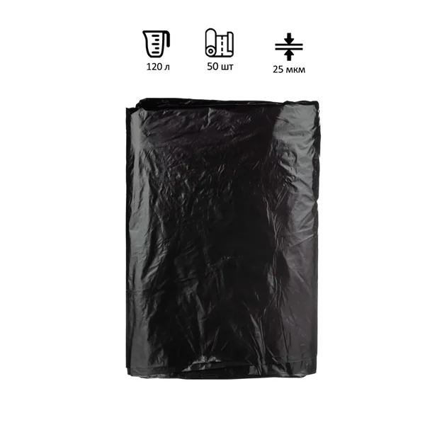 Мешки для мусора ПВД 120л 25мкм 50 шт черн 70х110см, Стандарт