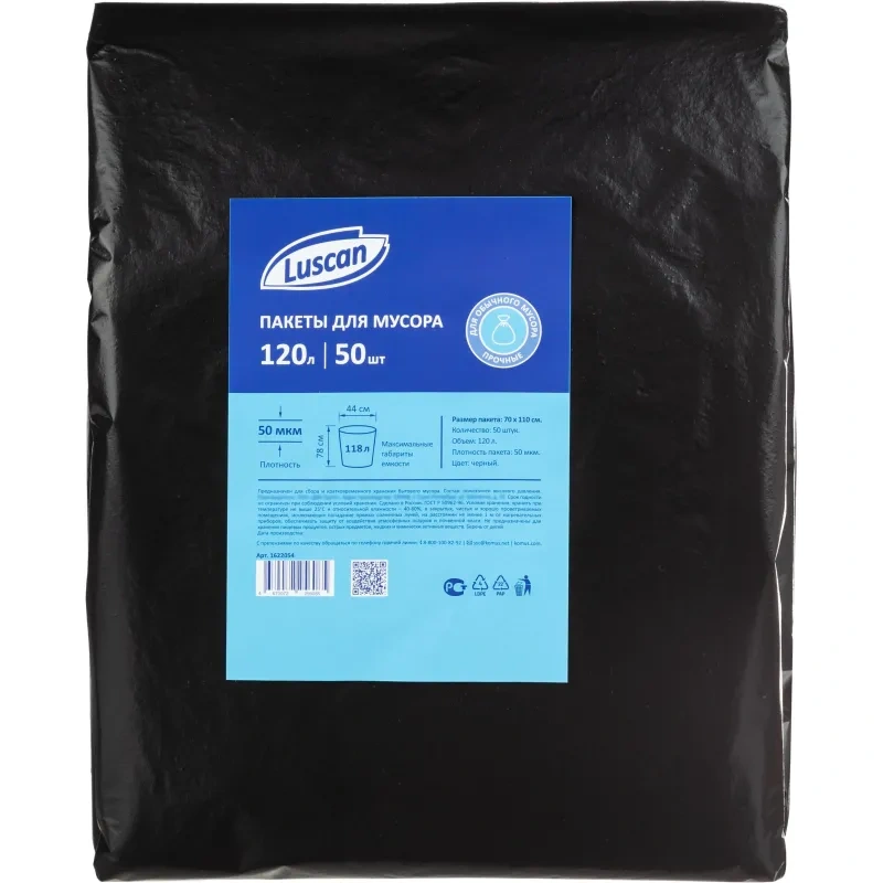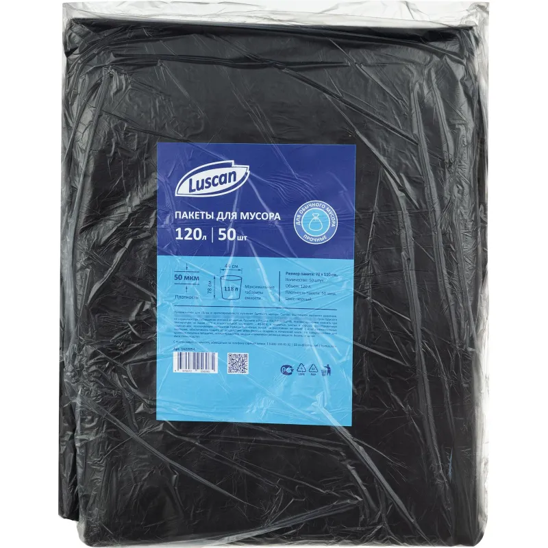 Мешки для мусора Luscan 120 л черные (ПВД, 50 мкм).