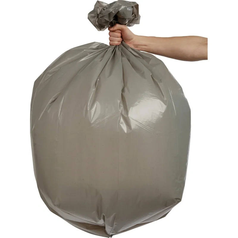 Мешки для мусора на 160 литров серые (50 мкм, в рулоне 10 штук, 90?130 см).