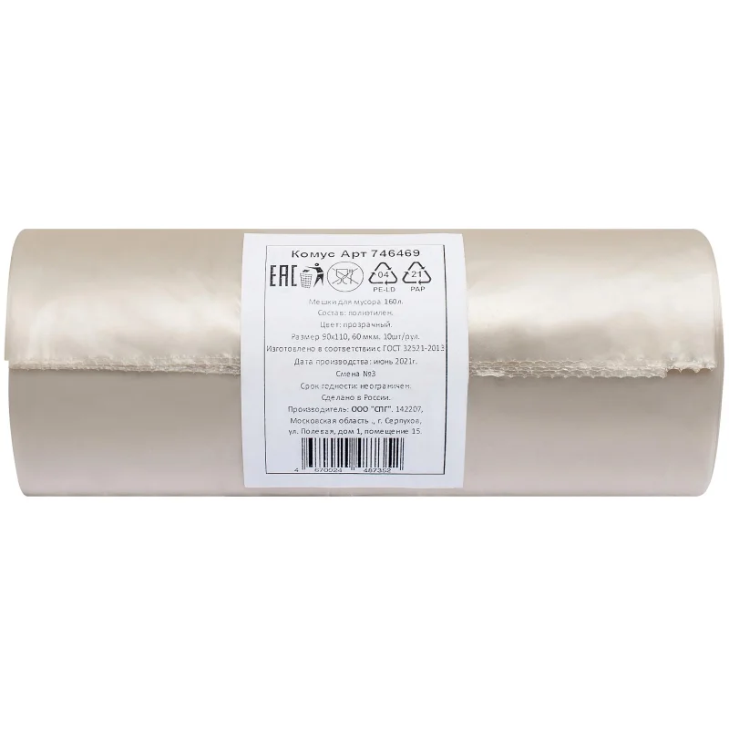 Мешки для мусора на 160 литров прозрачные (60 мкм, в рулоне 10 штук, 90х110 см)