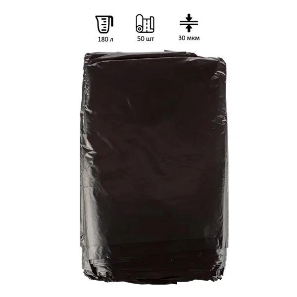 Мешки для мусора 180 л черные (ПВД, 30 мкм).