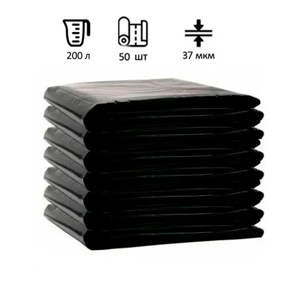 Мешки для мусора Ромашка 200л, ПВД, 90х130см, 37мкм, 80гр, 50шт, черного цвета, в пласте