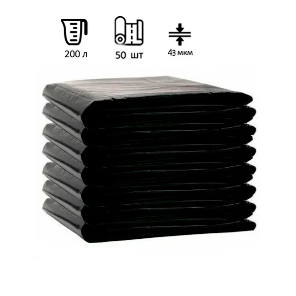 Мешки для мусора Ромашка 200л, ПВД, 90х130см, 43мкм, 95гр, 50шт, черного цвета, в пласте