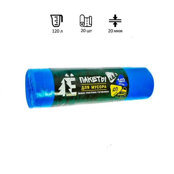 Мешки для мусора Ромашка Эконом 120л, ПВД, 70х110см, 20мкм, 20шт, синие, в рулоне