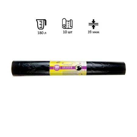 Мешки для мусора Ромашка Эконом 180л, ПВД, 90х110см, 39мкм, 10шт, черного цвета, в рулоне