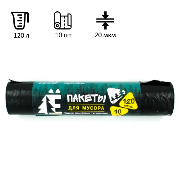 Мешки для мусора Ромашка Эконом 120л, ПВД, 68х105см, 20мкм, 10шт, черного цвета, в рулоне