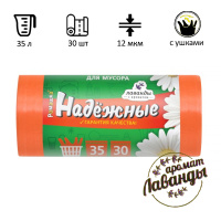 Мешки для мусора Ромашка Надежные 35л, с ушками, ПСД, 50х57, 5см, 12мкм, 30шт, оранжевые, в рулоне