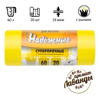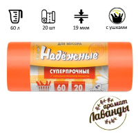 Мешки для мусора Ромашка Надежные 60л, с ушками, ПСД, 60х74см, 19мкм, 20шт, черного цвета, в рулоне