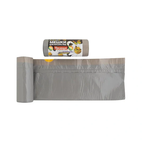 Мешки для мусора Ромашка 'Премиум особопрочные', ПВД, 30л, 50х58см, 35мкм, 15шт, серые