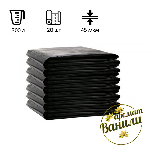 Мешки для мусора Ромашка Стандарт 300л, ПВД, 115х140см, 45мкм, 20шт, 135г, черного цвета, в пласте