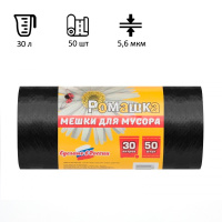 Мешки для мусора Ромашка Стандарт 30л, ПНД, 50х57, 5см, 5, 6мкм, 50шт, черного цвета, в рулоне