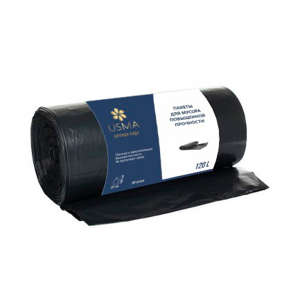 Мешки для мусора Usma повышенной прочности 120л, черного цвета, 20 шт