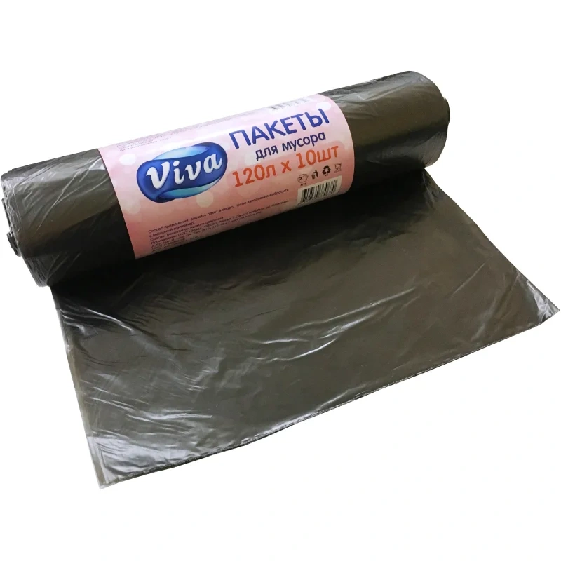 Мешки для мусора Viva ПНД 120л, 15мкм, 10шт/рул