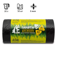 Мешки для мусора Ё-Ромашка Эконом 20л, ПНД, 44х45.8см, 6мкм, 50шт, 2.3г, черного цвета, в рулоне
