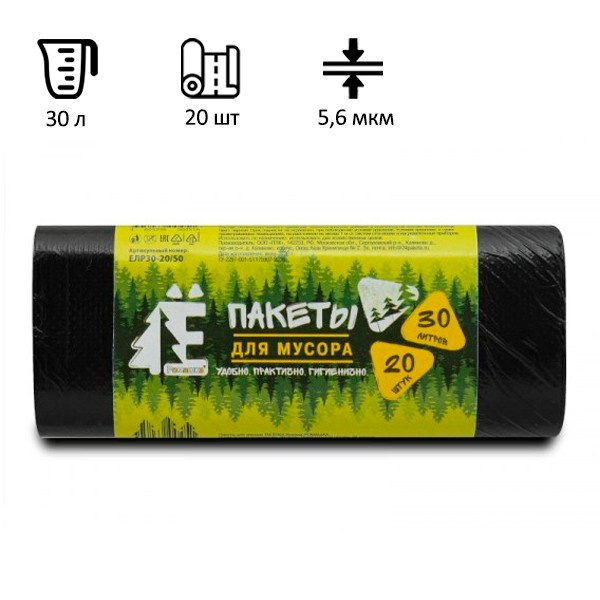 Мешки для мусора Ё-Ромашка Эконом 30л, ПНД, 48х57.5см, 5.6мкм, 50шт, 2.9г, черного цвета, в рулоне