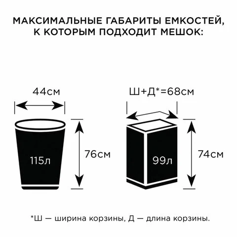 | Размер мешков | средние (от 60л до 120л) |
