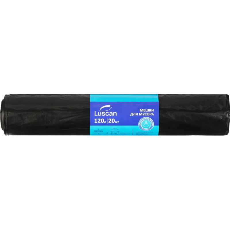 Мешки для мусора ПВД 120л 35мкм 20шт/рул черного цвета 68х110см Luscan_СПБ