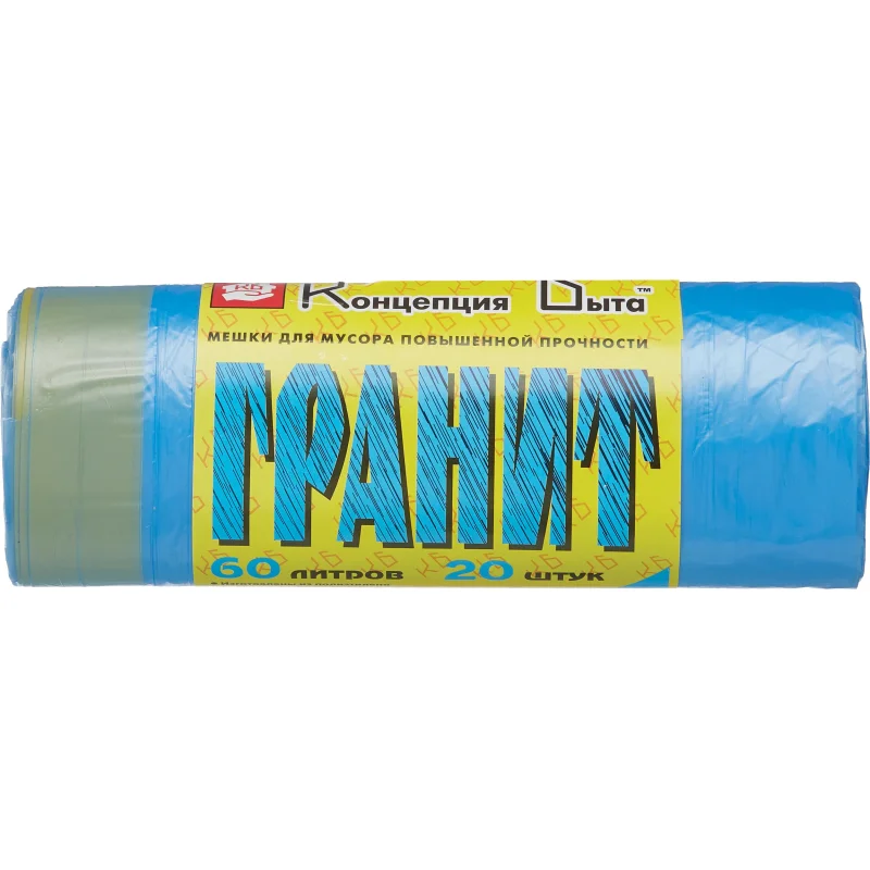 Мешки для мусора Гранит Прочные 60л, 15мкм, с завязками, 20 шт