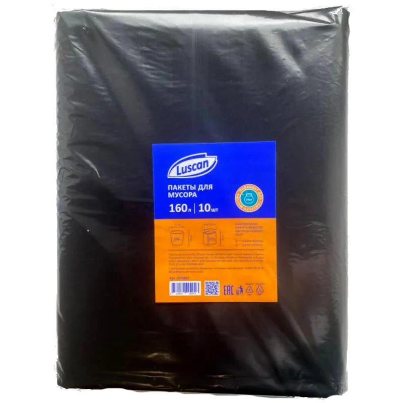 Мешки для мусора Luscan 160л, 65мкм, ПВД, черного цвета