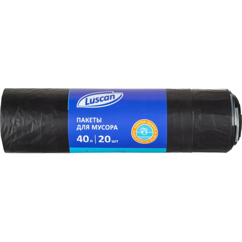 Мешки для мусора ПВД 40л 30мкм 20шт/рул черного цвета 55х70см Luscan с завязками