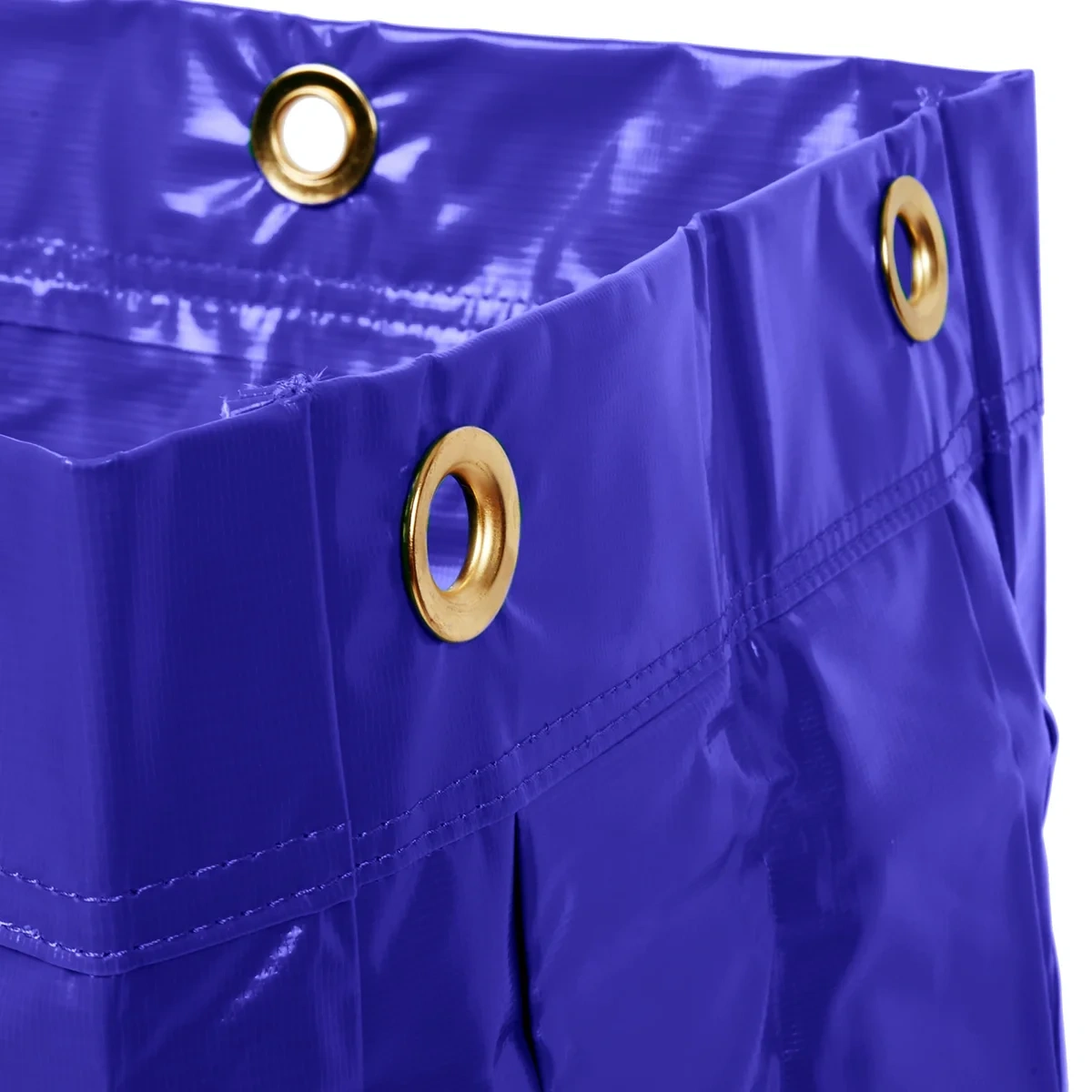 Мешки для сбора универсальных отходов, предназначены для размещении на гостиничных или уборочных тележках. Имеют шесть отверстий для крепления, подходят для большинства уборочных тележек. Емкие мешки объемом в 128 литров из прочного ПВХ винила с застежкой молнией для удобства в обслуживании.