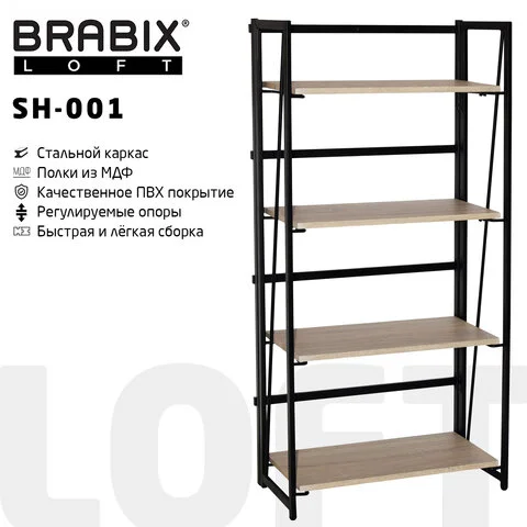 Стеллаж металлический Brabix Loft SH-001 дуб натуральный, 600х300х1250мм